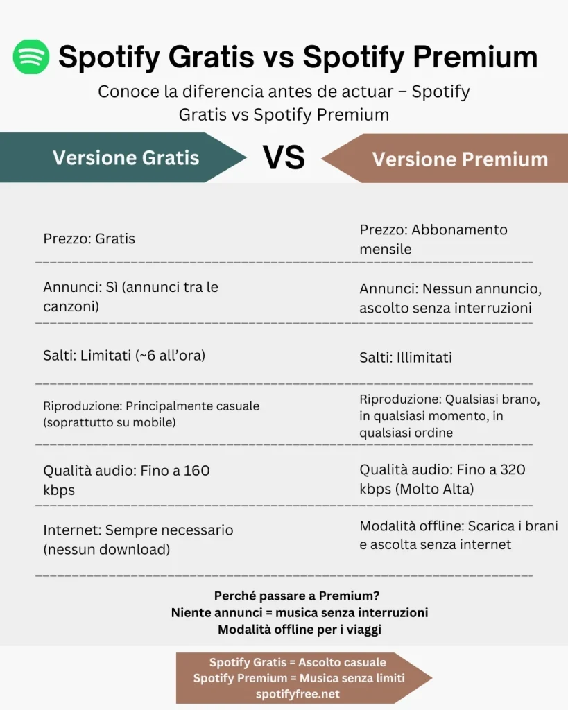 | Funzionalità | Spotify Free | Spotify Premium APK |